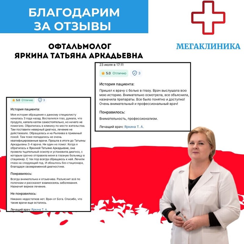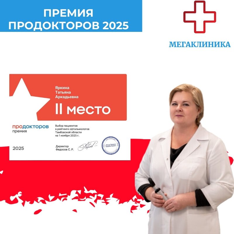 Яркина Татьяна Аркадьевна работает в сфере офтальмологии. Во врачебной практике она проводит диагностику, лечение и профилактику паталогий и травм органов зрительной системы. Чаще всего Татьяна Яркина использует местное или общее лечение, или назначает гимнастику для глаз и физиотерапию.