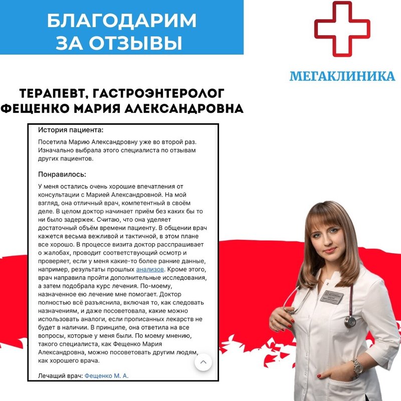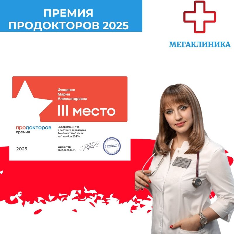 Фещенко Мария Александровна является терапевтом. Именно к ней нужно обратиться прежде всего, если вас беспокоит ваше самочувствие. Мария Фещенко - врач общей практики, а это означает, что она знакома со всеми отраслями медицины и может диагностировать и лечить недуги различных типов.