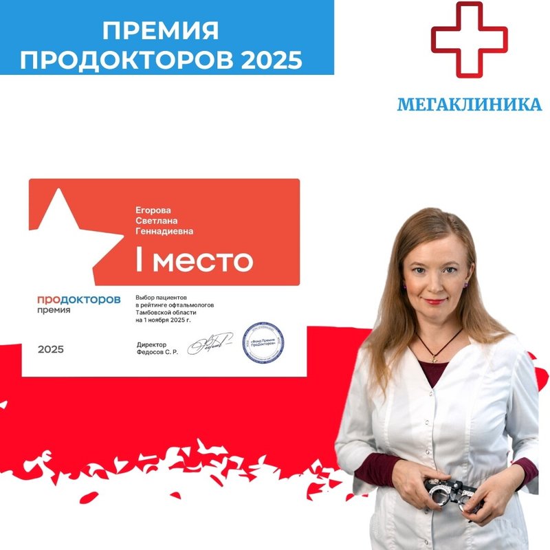 Егорова Светлана Геннадиевна работает в сфере офтальмологии. В своей практике она проводит диагностику, лечение и профилактику заболеваний и травм органов зрительной системы. В абсолютном большинстве случаев Светлана Егорова использует местное или общее лечение, а также может назначить гимнастику для глаз и физиопроцедуры.